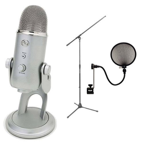 Blue Microphones Yeti USB Condenser Plug-and-Play Microphone with On Stage Boom Microphone Stand & Pop Filter